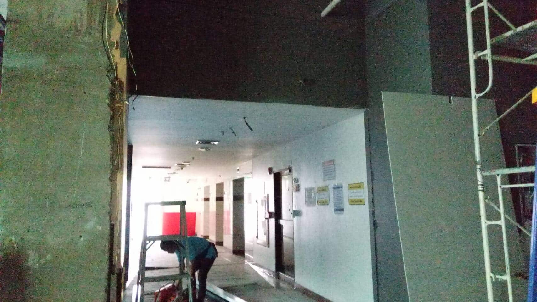 งานนี้เป็นรื้อถอนชุดบานออโตดอร์ และบานกระจกติดตายที่เป็นบานเปลือย เหตุผลการรื้อ หน้างานต้องการแก้ไขแบบปรับปรุงหุ้มคอมโพสิท แก้ไขหน้างานอื่นๆ