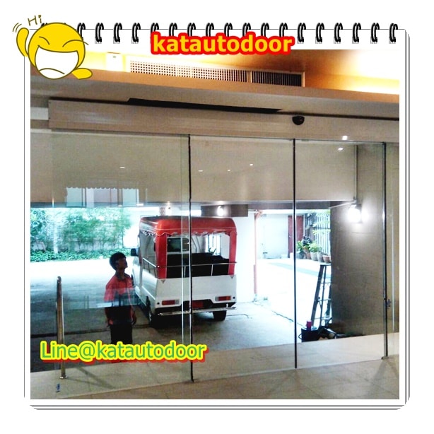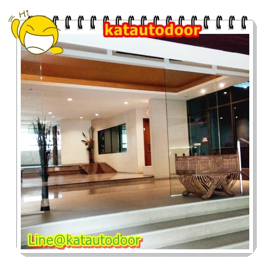 มาจบที่บานเลื่อนอัตโนมัติกระจกเปลือย ซึ่งก็ทำให้หรูหราสวยงามดี ลักษณะหน้างานต้องเสริมคานซัพพอร์ตลงมา 25 ซม.สำหรับยึดชุดราง Autodoor และเพื่อประโยชน์ในการบังชุดหนีบกระจกบานเปลือยไปในตัว ซึ่งชุดจับกระจกบานเปลือยของบานเลื่อนอัตโนมัติชุดนี้ ใช้เป็นแบบหนีบ ไม่ต้องเจาะรู เข้า – ออก ด้วยระบบเซ็นเซอร์ตรวจจับความเคลื่อนไหว มีเซ็นเซอร์ป้องกันประตูหนีบ ฝาครอบชุดรางใช้เป็นสีอบขาว เพื่อให้เหมาะกับ โทนสีหน้างาน การติดตั้งผ่านพ้นไปด้วยดี ทดสอบ เทส ส่งงานเรียบร้อย