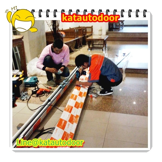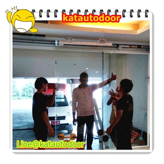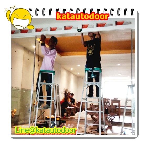 ติดตั้งประตูอัตโนมัติบานกระจกเปลือยคู่